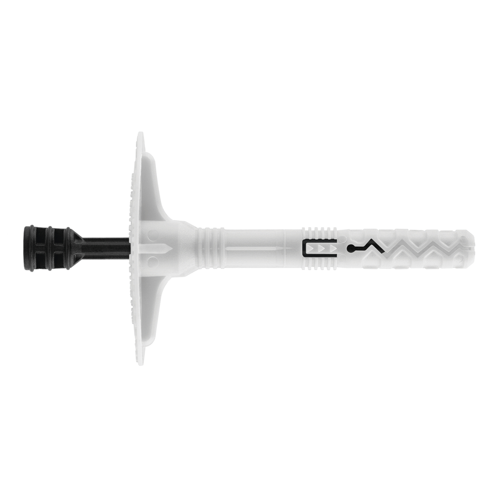Taco plástico especial para fijación de placas aislantes y materiales blandos. ETA-12/0437 Incorpora arandela de sustentación del aislante y clavo central de expansión para anclaje.