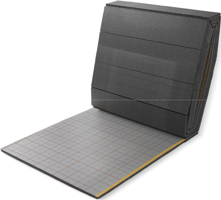 NETSU® Plus Grafito, es un Panel Aislante Termoacústico de Poliestireno Expandido GRAFITO mecanizado liso con revestimiento de lámina plástica de alta resistencia y solape entre placas con cinta autoadhesiva, conforme a la norma UNE-EN 13163:2013 + A2:2017 y UNE-EN 1264:2022.