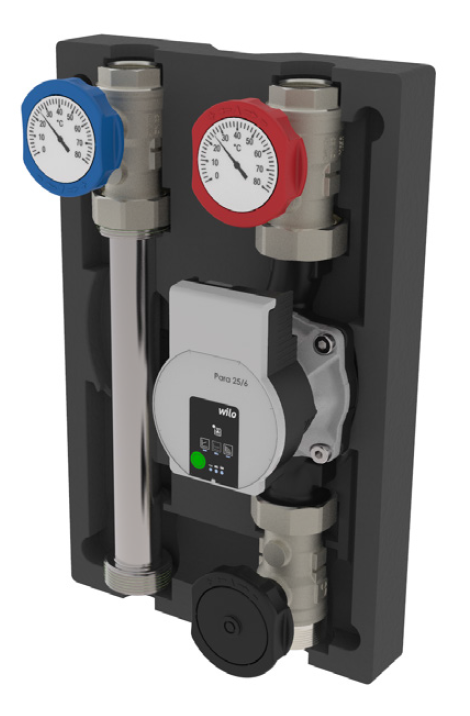 Diseñado para combinarse con los colectores de distribución CS125 DN25 y DN32, garantiza la circulación en sistemas modernos, para el intercambio de calor entre el generador de calor y el sistema sin regular la temperatura.